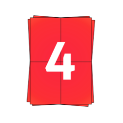Las hojas rojos de pegatinas A4 contienen 4 etiquetas A6 por hoja. Las etiquetas autoadhesivas A6 tienen un adhesivo permanente y están hechas de papel decolorado sin cloro, por lo que se pueden pegar en diferentes superficies como papel, cartón y lámina. Las etiquetas A6 son aptas para todas las impresoras de inyección de tinta y láser, así como para dispositivos offset y copiadoras. Una caja contiene 100 hojas de etiquetas A4. Así que hay 400 etiquetas A6 de color rojo. Las etiquetas A6 105x148mm se utilizan a menudo como etiquetas de envío para DPD, Correos España, TNT, GLS y UPS. Debido a su tamaño, también se denominan pegatinas A6, etiquetas A6.